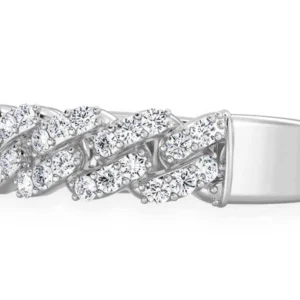 Discover the luxurious elegance of the Ice Shop Cuban Ring, meticulously crafted from 14K solid white gold. This timeless masterpiece is designed to elevate your fashion statement and serve as the ultimate accessory for any occasion. Featuring a striking, flashy front embellished with 0.55ctw of handset VS diamonds, this ring radiates brilliance and embodies sophistication. Pair it effortlessly with your diamond Cuban link bracelet or necklace to complete your refined look.