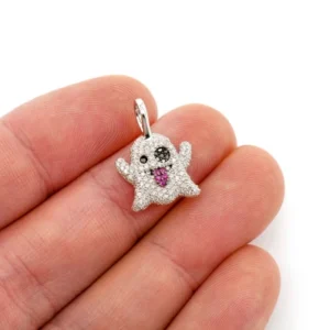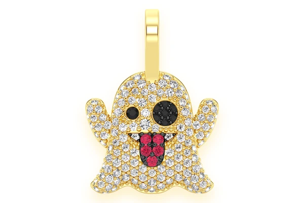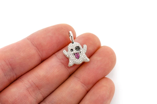 Add a dash of humor and charm to your jewelry collection with the Icebox Mini Ghost Emoji Pendant. This exquisite piece isn’t just jewelry; it’s an embodiment of fun, style, and individuality. Featuring a whimsical ghost design that’s entirely diamond-coated, it’s bound to turn heads wherever you go. Highlighted by black diamond eyes and a ruby tongue, this pendant speaks volumes about your lively and unique personality.