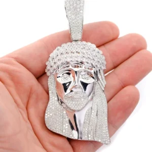 Elevate your jewelry collection with this diamond Jesus men’s pendant, a remarkable creation that merges spiritual symbolism with luxurious design. Expertly handcrafted by Iceshop, this pendant showcases the intricately detailed face of Jesus, a centerpiece that radiates elegance and devotion. Its stunning 10.50ctw diamond settings accentuate the sculpted facial features and crown, creating a jewelry piece that stands out in any crowd.