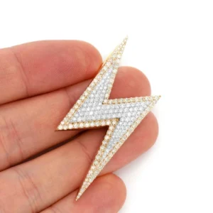 Every detail of this lightning bolt pendant highlights unparalleled craftsmanship. The layered design adds depth and dimension, with a diamonds‘ brilliant sparkle captures and a natural light with beauty. The pendant reflects Iceshop’s commitment to using only the highest quality materials and meticulous attention to detail, resulting in a timeless piece that will remain a treasured part of your jewelry collection for years to come.